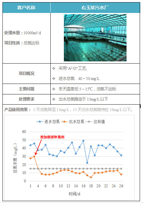 針對(duì)性的接種總氮強(qiáng)效菌種—邁葳®總氮激活菌101,改善菌群結(jié)構(gòu),快速實(shí)現(xiàn)總氮降解目的。總氮去除率高達(dá)99%。
